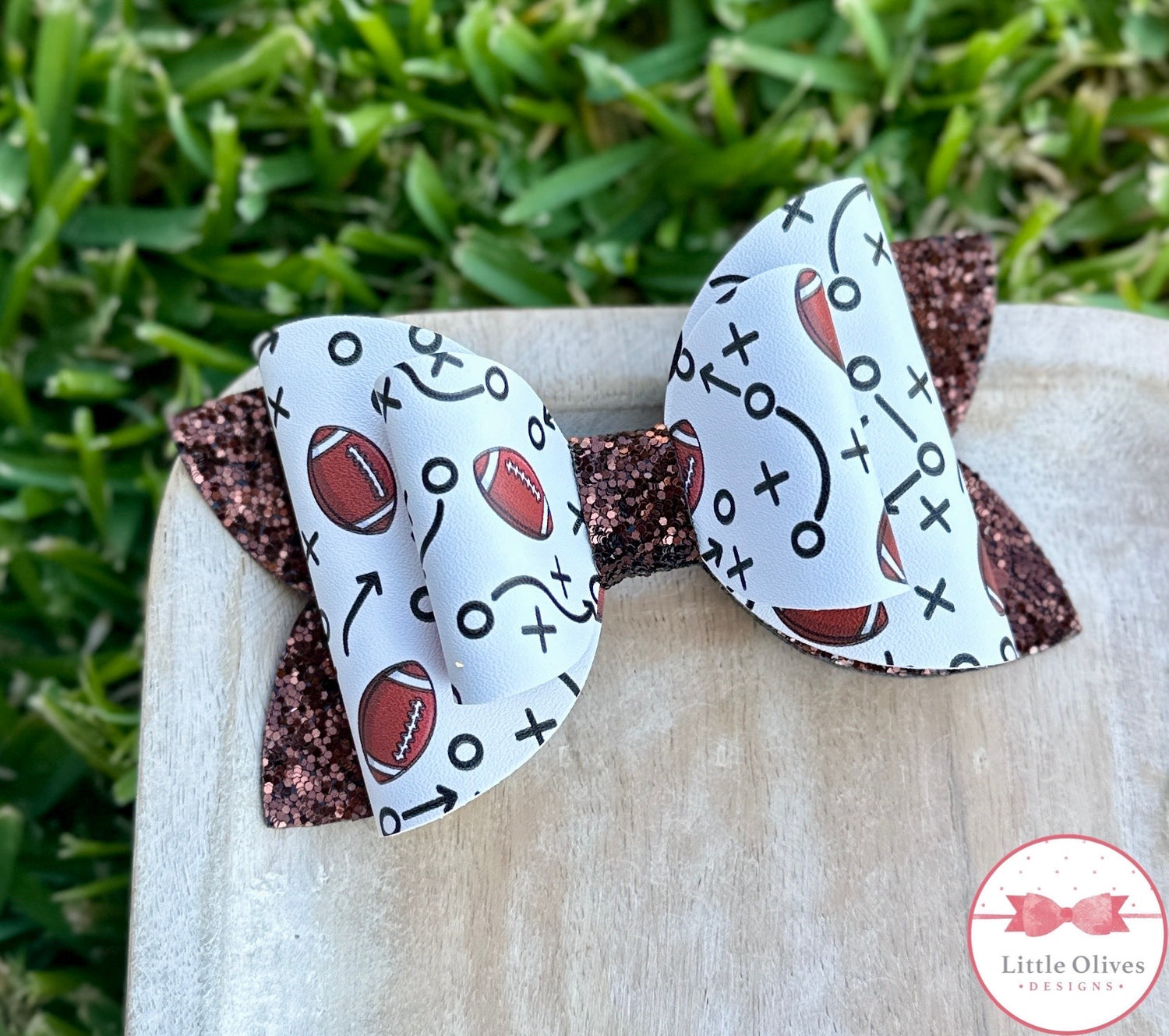 All bows are made with high quality vegan leather and glitters. Glitters do not shed.