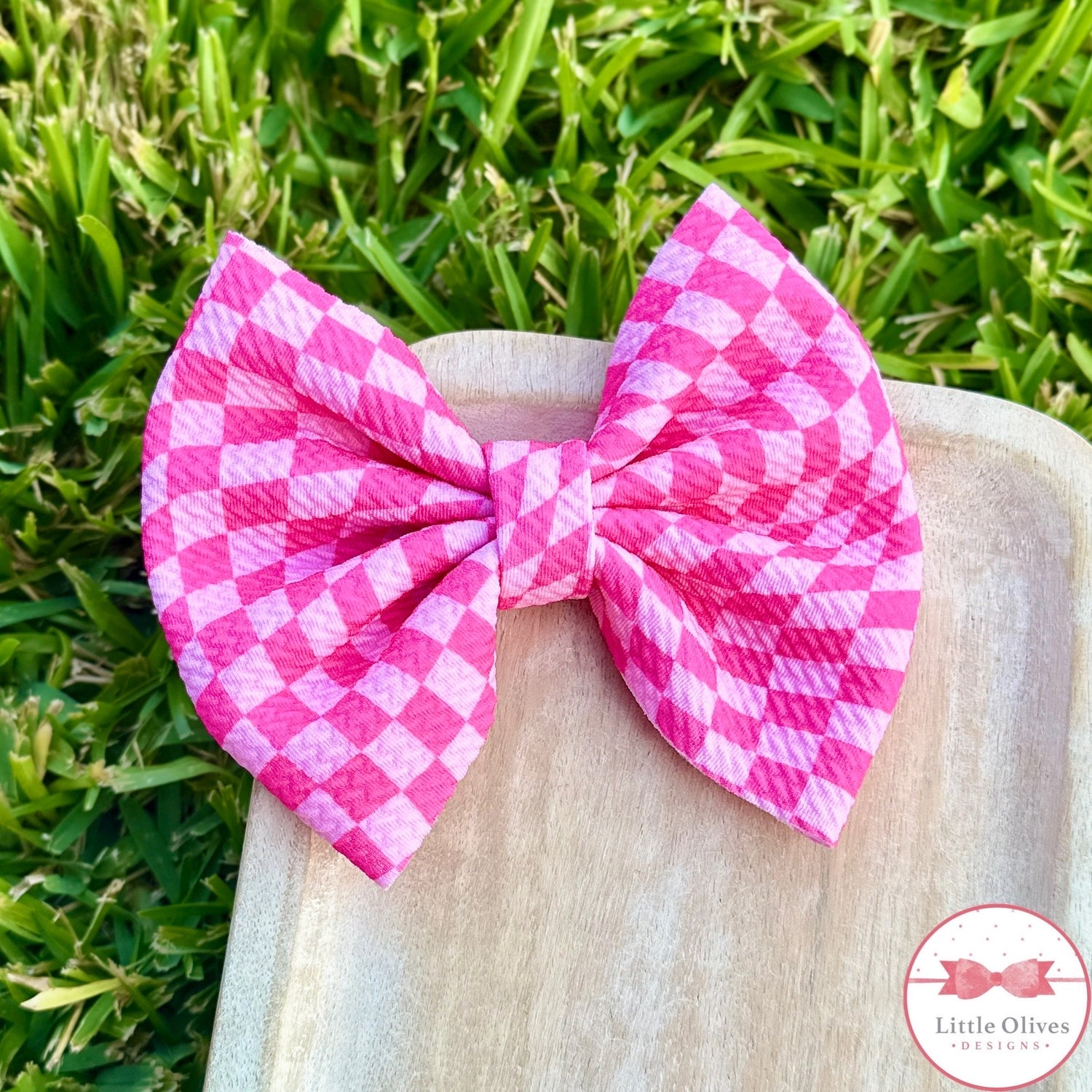 PINK WAVY CHECK BOW