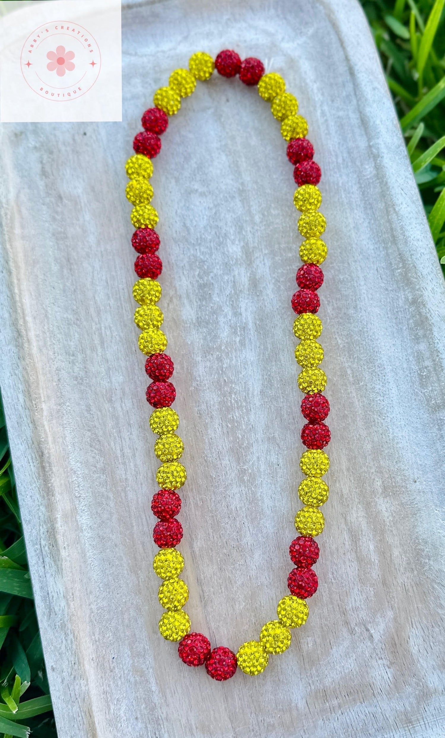 Drip necklaces made with rhinestone bling beads for everyone and different sports.